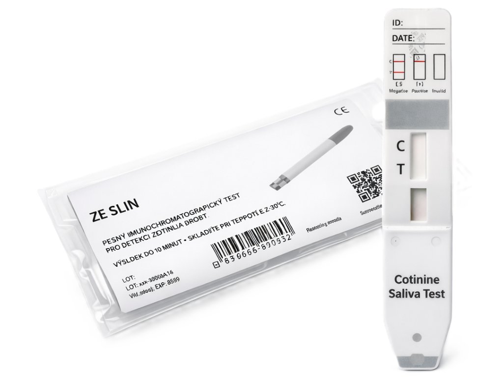 - Negativní výsledek: dvě čárky (C + T) – koncentrace kotininu pod 20 ng/ml