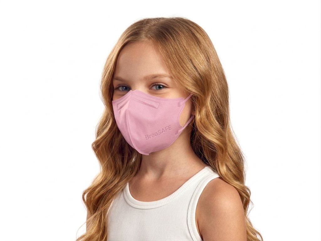 5ks - Dětský nanovlákenný respirátor BreaSAFE® – Růžová| Opakovaně použitelný