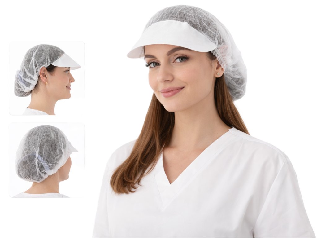 Čepice s kšiltem z netkané textilie, 53 cm, 100 ks, bílá