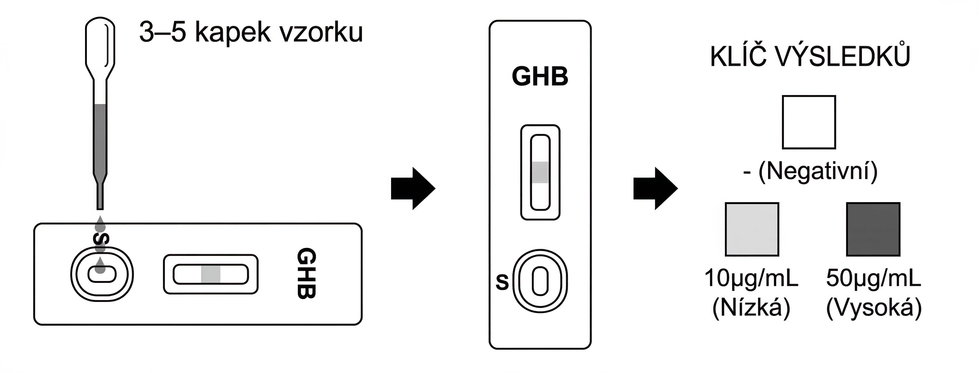 - Vzorek: Lidská moč nebo podezřelý nápoj.
