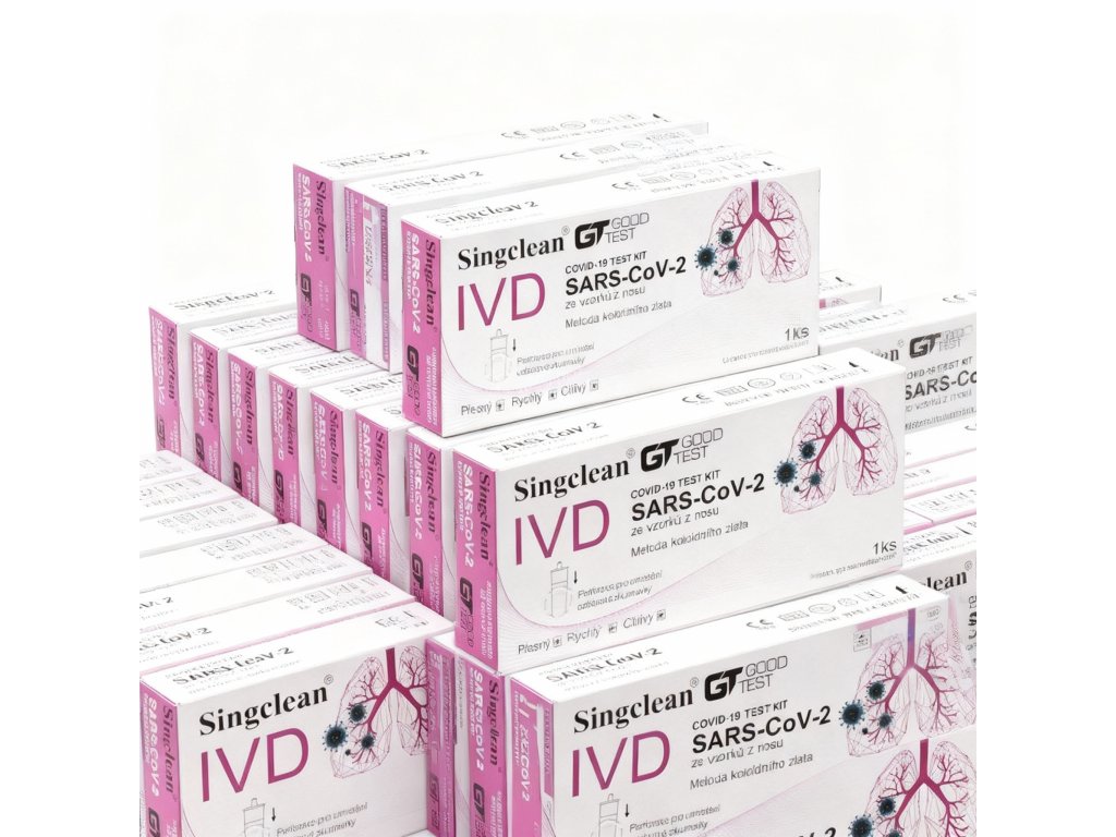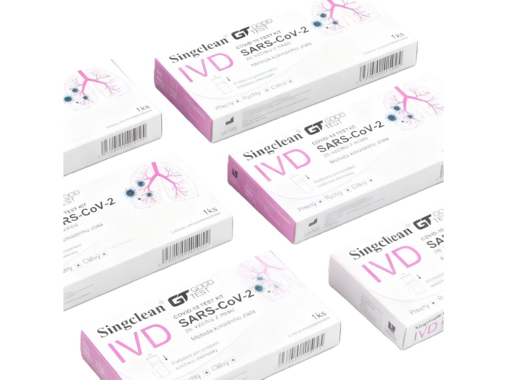 Karton 100ks - SINGCLEAN - COVID-19 výtěrový antigenní rychlotest z kraje nosu na koronavirus