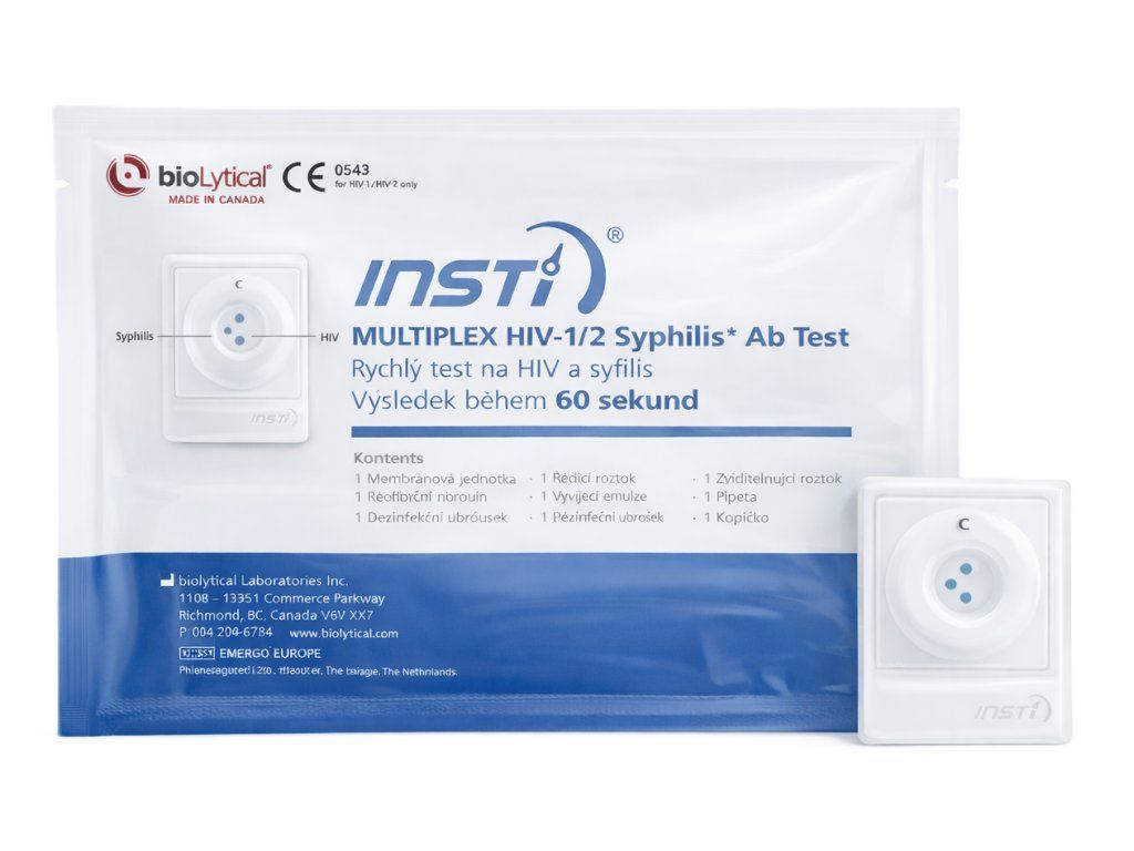 INSTi Multiplex HIV-1/2 Syphilis Ab je prémiový test pro rychlou a spolehlivou diagnostiku HIV i syfilis v jediném testu. Výsledek znáte během 60 sekund, což umožňuje okamžité rozhodnutí o dalším postupu léčby, prevenci přenosu infekce z matky na dítě a nabízí kombinaci rychlosti, bezpečnosti a vysoké přesnosti.