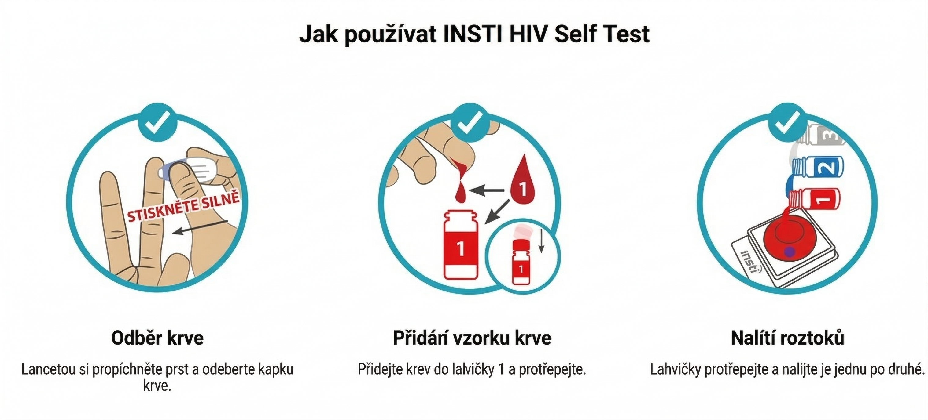 - Další krok: V případě pozitivního výsledku je nutné kontaktovat HIV centrum pro potvrzující laboratorní test.