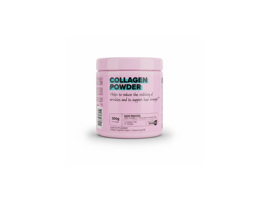 Dopřejte své pleti a vlasům přirozenou péči zevnitř s kolagenem v prášku Innovit. Tento doplněk stravy obsahuje kolagenové peptidy, vitamín C a kyselinu hyaluronovou, které společně podporují hustší a pevnější vlasy, zlepšují elasticitu pleti a redukují viditelnost jemných vrásek.