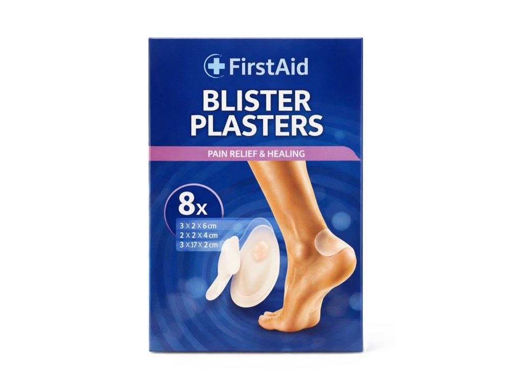 Zbavte se nepříjemných puchýřů s náplastmi First Aid. Tyto náplasti jsou navrženy tak, aby chránily postižené místo, zmírnily bolest a urychlily hojení.