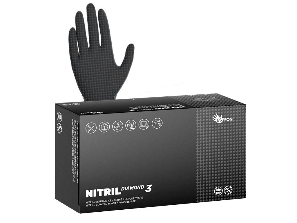 Nitrilové rukavice NITRIL DIAMOND3 100 ks, nepudrované, černé, 8.0 g
