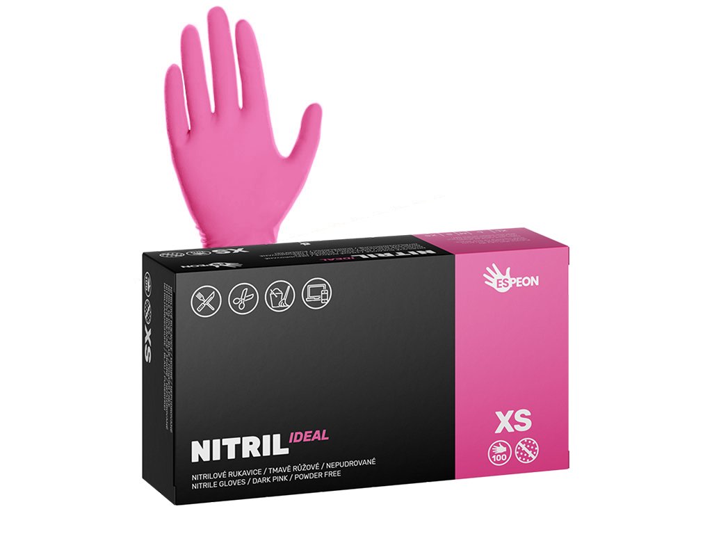Nitrilové rukavice NITRIL IDEAL 100 ks, nepudrované, tmavě růžové, 3.5 g