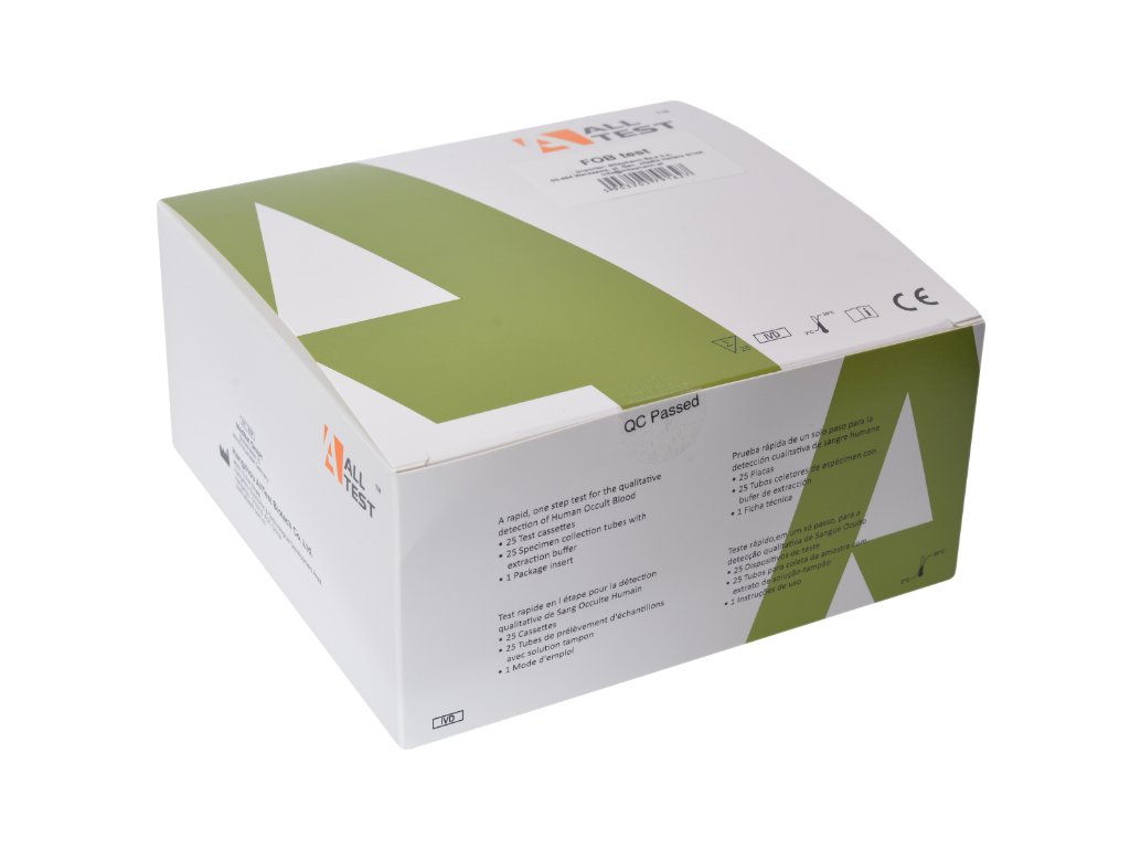 FOB (Fecal Occult Blood) test je rychlý imunochemický test určený k kvalitativní detekci okultní krve ve stolici. Umožňuje odhalit i nepatrné množství krve pocházející z různých částí trávicího traktu – od žaludku až po tlusté střevo.