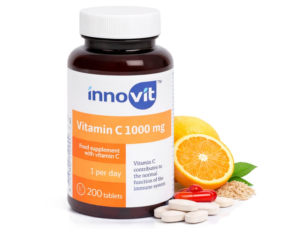 Vitamín C 1000 mg od značky Innovit je silný doplněk stravy navržený pro intenzivní podporu imunitního systému, energetického metabolismu a přirozené obranyschopnosti. Vitamin C hraje zásadní roli při ochraně buněk před oxidativním stresem, podporuje tvorbu kolagenu a přispívá k normální funkci nervového systému.