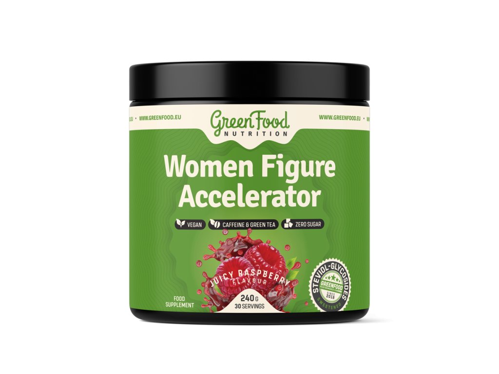 GreenFood Nutrition Women Figure Accelerator je moderní doplněk stravy v práškové formě, navržený speciálně pro aktivní ženy. Kombinuje pečlivě vybrané aminokyseliny, rostlinné extrakty a přírodní složky, které podporují aktivní životní styl, pitný režim a harmonii chuti bez přidaného cukru.